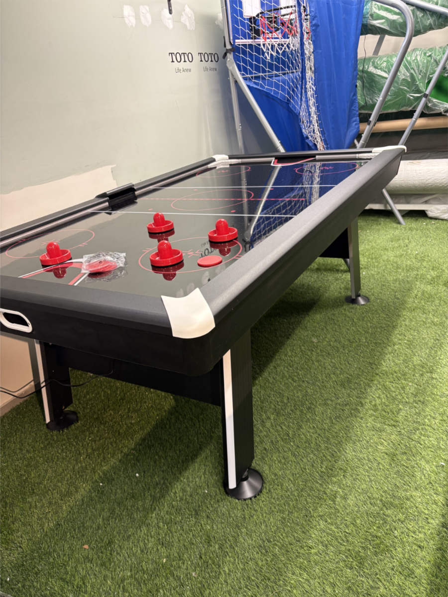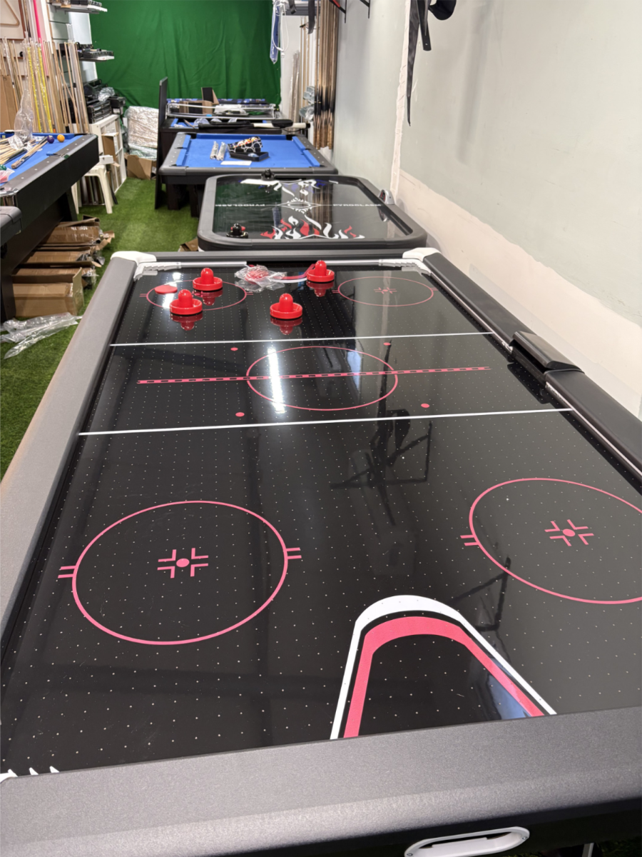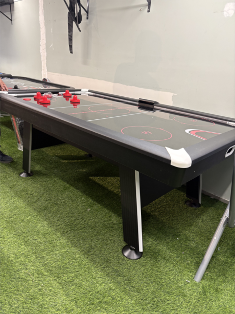 מוכנים למשחק המהיר ביותר בישראל? ה-Air Storm 7FT הוא לא רק שולחן הוקי אוויר – הוא מכונת אדרנלין משומנת. עם גוף מאסיבי הבנוי מעץ סנדוויץ' מחוזק וטכנולוגיית משחק ייחודית, הוא מביא את חוויית ה"ארקייד" המקצועית ישירות אליכם, רק הרבה יותר חזק ויציב מכל מה שהכרתם. מה הופך אותו למפלצת של הקטגוריה? מבנה סלע: מסגרת עץ סנדוויץ' עבה ומחוזקת המעניקה יציבות מושלמת ומונעת רעידות גם במשחקים הכי סוערים. טכנולוגיית Turbo-Bounce: מערכת קפיצים ייחודית בדפנות השולחן שדוחפת את הדיסקית בחזרה למגרש בעוצמה כפולה. התוצאה: משחק מהיר פי 2 ודינמיקה שאי אפשר לעצור. אקשן לקבוצות: מגיע עם 4 ידיות ו-4 דיסקיות – מושלם למשחקי זוגות ולטורנירים משפחתיים. לוח תוצאות דיגיטלי: חיישנים מדויקים ולוח תוצאות אלקטרוני ששומר על המתח גבוה (ועל המשחק הוגן). זרימת אוויר אחידה: מפוח עוצמתי השומר על שכבת אוויר רציפה בכל שטח הפנים הענק של ה-7 פיט.